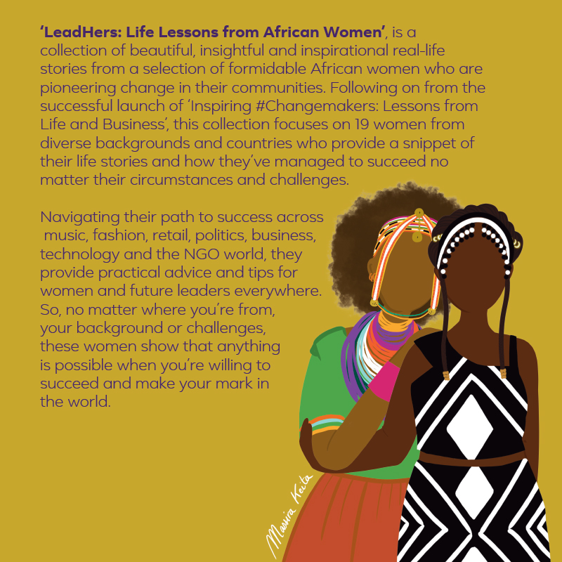 ‘LeadHERs: Life Lessons from African Women’ follows on from the successful 2020 launch of ‘Inspiring #Changemakers: Lessons from Life and Business’ in South Africa. This 2021 book is further brought to life through a series of beautifully illustrated artwork specially commissioned from four female artists from across the continent – Massira Keita from Côte d’Ivoire, Lulu Kitololo from Kenya, Karabo Poppy from South Africa, and Awele Emili from Nigeria.